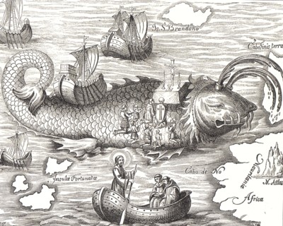 Parece haber sido en este periodo que se apoderó de él el deseo de emprender la expedición que formó la base de Navigation of St. Brendan, la leyenda más popular en la Edad Media. Algunas dificultades se han notado simpre con respecto a la fecha que se le asigna habitualmente, como que tenía entonces sesenta años de edad, lo cual no es fácil conciliarlo con otros hechos de su vida (Lanigan); pero esta dificultad parece surgir de la creencia de que hubo un solo viaje, como se indica en las versiones actuales en el extranjero. La vida irlandesa inédita, en Book of Lismore (año 1400), elimina muchas dificultades describiendo dos viajes, con un intervalo considerable de tiempo. Señala que en su ordenación las palabras de la Escritura (29 Entonces El les dijo: En verdad os digo: no hay nadie que haya dejado casa, o mujer, o hermanos, o padres o hijos por la causa del reino de Dios, 30 que no reciba muchas veces más en este tiempo, y en el siglo venidero, la vida eterna. […]Lucas 18:29,30) produjeron una profunda impresión en él, resolviendo abandonar su patria y su herencia, suplicando a su Padre Celestial le concediera 'la misteriosa tierra lejos del conocimiento humano.' En su sueño se le apareció un ángel, que le dijo: 'Levántate, Brendan, y Dios te concederá la tierra que buscas.' Regocijado en el mensaje se levantó y partió 'solo en la montaña por la noche y contempló el vasto y oscuro océano que se extendía alrededor suyo', (tal es exactamente la idea de Brandon Hill), y lejos en la distancia le pareció contemplar 'la bella y excelente tierra, con ángeles flotando sobre ella.' Después de otra visión y la promesa de la presencia del ángel con él, zarpó en su navegación, pero, después de siete años errantes sin éxito, resolvió volver a su país, donde muchos lo esperaban, habiendo una tarea que le esperaba. Que Brendan emprendiera tal expedición y visitara algunas de las islas occidentales y septentrionales, es bastante posible; pues es cierto que los ermitaños irlandeses encontraron su camino a las islas Hébridas, Shetland y Faroe e incluso a Islandia.