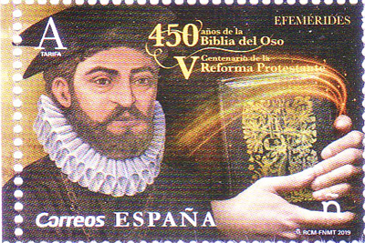 Sello conmemorativo del 450 aniversario de la Biblia del Oso