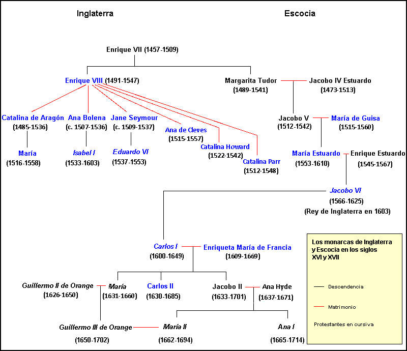 | María de Guisa (regente) (1542-1560) ![]() | Ante la minoría de edad de María, hija de Jacobo V, se hace cargo de la regencia su madre María de Guisa. George Wishart, quien ha estado en Inglaterra, Alemania y Suiza vuelve a Escocia (1543) consumido por el deseo de predicar el evangelio. Su ayudante y discípulo se llama John Knox. Wishart es apresado por orden del cardenal Beaton, juzgado y quemado en la pira (1546). Tres meses más tarde el propio Beaton es asesinado en el castillo de St. Andrews, que se convierte en baluarte protestante. Knox se convierte en el predicador del castillo y en el sucesor de la causa de Wishart. Los franceses atacan la fortaleza de San Andrés (1547) y Knox, en contra de los términos de la rendición, es condenado a galeras. La intervención de Inglaterra libra a Knox de su condena (1549) y ejerce como predicador en esa nación durante cinco años, luego llega a Ginebra y entra en contacto con Calvino. Volverá a Escocia definitivamente en 1557. Los protestantes escoceses se organizan (1557) en iglesias de estilo presbiteriano. Isabel I acude en ayuda (1560) de los protestantes escoceses en su lucha contra el ejército de francés, que quiere aplastar el protestantismo en Escocia. | "Consigna la esperanza, que en un tiempo tuvieron los firmantes, de que Dios haría a la regente instrumento para afirmar y sostener Su palabra y verdadero culto, defendiendo Su congregación y abatiendo toda idolatría, abominación y superstición del reino. Expresa su pesar al saber que ella estaba determinada a hacer todo lo contrario. Le advierte contra toda extralimitación de sus funciones y usurpación de un poder en el reino de Cristo que no pertenecía a ella. Distingue claramente entre la jurisdicción civil y la eclesiástica. Pide a la regente que deje sin efecto las cartas contra los mensajeros de Dios. Insiste en que Su mensaje debería ser recibido, aunque el orador no tuviera la vocación regular. Afirma que los ministros que han sido inhibidos fueron enviados por Dios y fueron también llamados según el orden escriturario. Señala que los mandatos de ella deben ser desobedecidos si son contrarios a los de Dios, y que los enemigos la estaban induciendo arteramente a disponer cosas injustas de modo que los profesantes, cuando incurrieron en desobediencia, pudieran ser condenados por sedición y rebelión. Le rogaba tuviera piedad con los que estaban buscando la gloria de Dios y la verdadera obediencia a la regente. Declaraba que, con la ayuda de Dios, marcharían por el camino que habían iniciado, que recibirían y ayudarían a Sus ministros y Su Palabra, y que nunca recaerían en las abominaciones que habían abandonado, aunque todos los poderes de la tierra le ordenaran hacerlo. Le hacían presente su humilde sumisión a ella, en toda obediencia debida en la paz, en la guerra, en el cuerpo, en los bienes y posesiones. Terminaban rogando que el Dios eterno la instruyera, fortaleciera y dirigiera con Su Espíritu por el camino que fuera aceptable a El." (Carta de los lores a la regente, 6 de mayo de 1559) | |