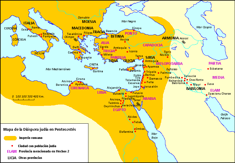 Mapa de la Dispersión judía en el imperio romano