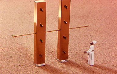 'Y harás para el tabernáculo tablas de madera de acacia, que estén derechas. La longitud de cada tabla será de diez codos, y de codo y medio la anchura. Dos espigas tendrá cada tabla, para unirlas una con otra; así harás todas las tablas del tabernáculo. Harás, pues, las tablas del tabernáculo; veinte tablas al lado del mediodía, al sur. Y harás cuarenta basas de plata debajo de las veinte tablas; dos basas debajo de una tabla para sus dos espigas, y dos basas debajo de otra tabla para sus dos espigas. Y al otro lado del tabernáculo, al lado del norte, veinte tablas; y sus cuarenta basas de plata; dos basas debajo de una tabla, y dos basas debajo de otra tabla. Y para el lado posterior del tabernáculo, al occidente, harás seis tablas. Harás además dos tablas para las esquinas del tabernáculo en los dos ángulos posteriores; las cuales se unirán desde abajo, y asimismo se juntarán por su alto con un gozne; así será con las otras dos; serán para las dos esquinas. De suerte que serán ocho tablas, con sus basas de plata, dieciséis basas; dos basas debajo de una tabla, y dos basas debajo de otra tabla. Harás también cinco barras de madera de acacia, para las tablas de un lado del tabernáculo, y cinco barras para las tablas del otro lado del tabernáculo, y cinco barras para las tablas del lado posterior del tabernáculo, al occidente. Y la barra de en medio pasará por en medio de las tablas, de un extremo al otro. Y cubrirás de oro las tablas, y harás sus anillos de oro para meter por ellos las barras; también cubrirás de oro las barras.' (15 Harás luego para el tabernáculo tablas de madera de acacia, colocándolas verticalmente. 16 La longitud de cada tabla será de diez codos, y de un codo y medio la anchura de cada tabla. 17 Cada tabla tendrá dos espigas para unirlas una con otra; así[…]Éxodo 26:15-29)